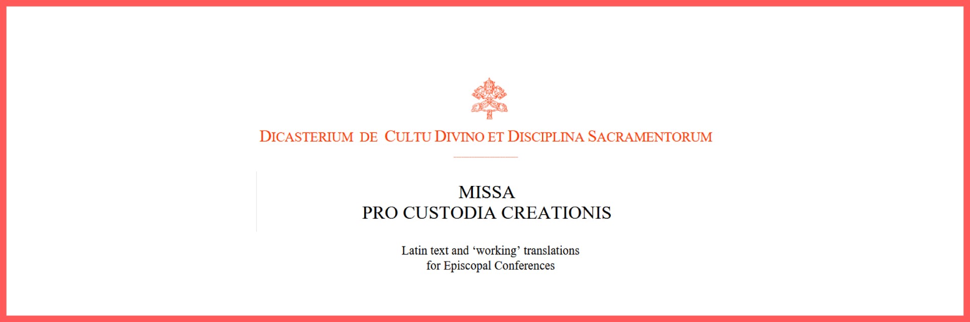 The “working translations” of the Missa pro custodia creationis presented here are in no way intended to replace the individual Bishops’ Conferences in their responsibility for the translation of liturgical texts and may be freely adapted; they simply seek to offer assistance in facilitating the work of translation, with a view to their possible use on the next “World Day of Prayer for the Care of Creation” (1 September 2025).