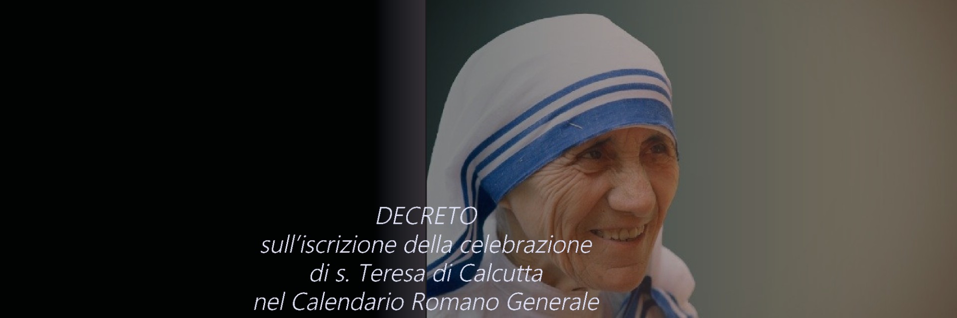 Pertanto il Sommo Pontefice Francesco, accogliendo le petizioni e i desideri di Pastori, di religiose e religiosi, come di associazioni di fedeli, considerato l’influsso esercitato dalla spiritualità di santa Teresa di Calcutta in diverse regioni del mondo, ha disposto che il nome di santa Teresa di Calcutta, vergine, sia iscritto nel Calendario Romano Generale e la sua memoria facoltativa sia celebrata da tutti il 5 settembre.