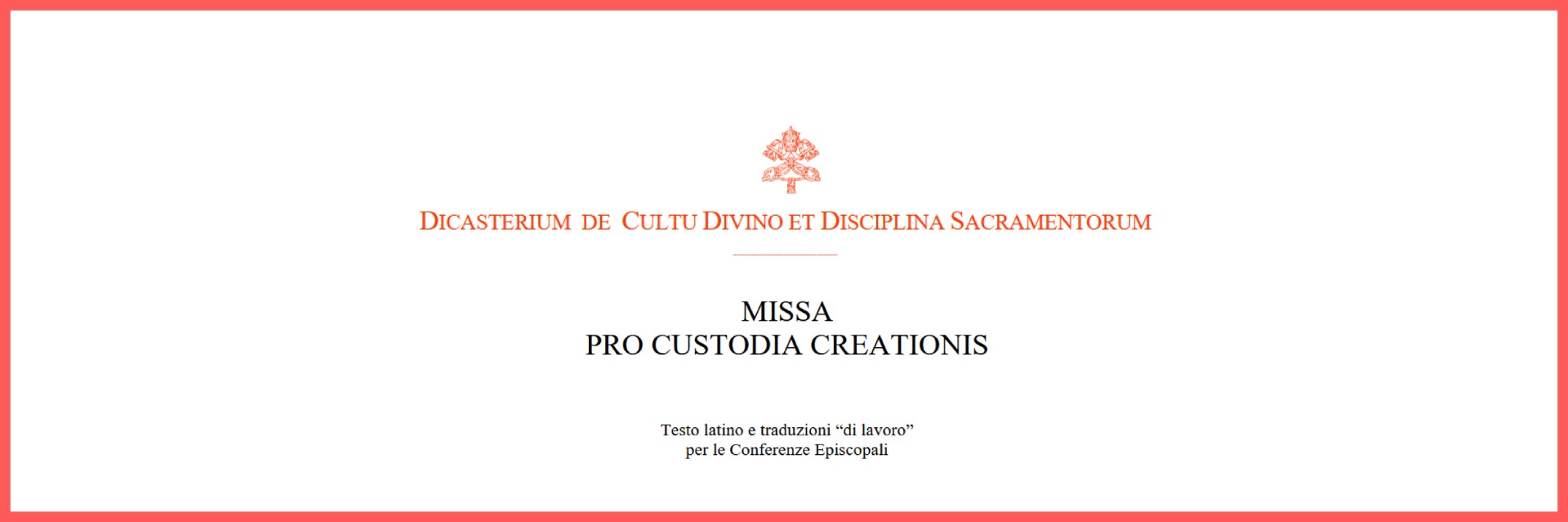 Le “traduzioni di lavoro” della Missa pro custodia creationis che vengono qui presentate non intendono in nessun modo sostituire le singole Conferenze Episcopali nella loro responsabilità di traduzione dei testi liturgici e possono essere liberamente adattate: esse vogliono semplicemente offrire un aiuto per facilitare il lavoro di traduzione, in vista di un suo possibile utilizzo nella prossima “Giornata Mondiale di Preghiera per la Cura del Creato” (1 settembre 2025).